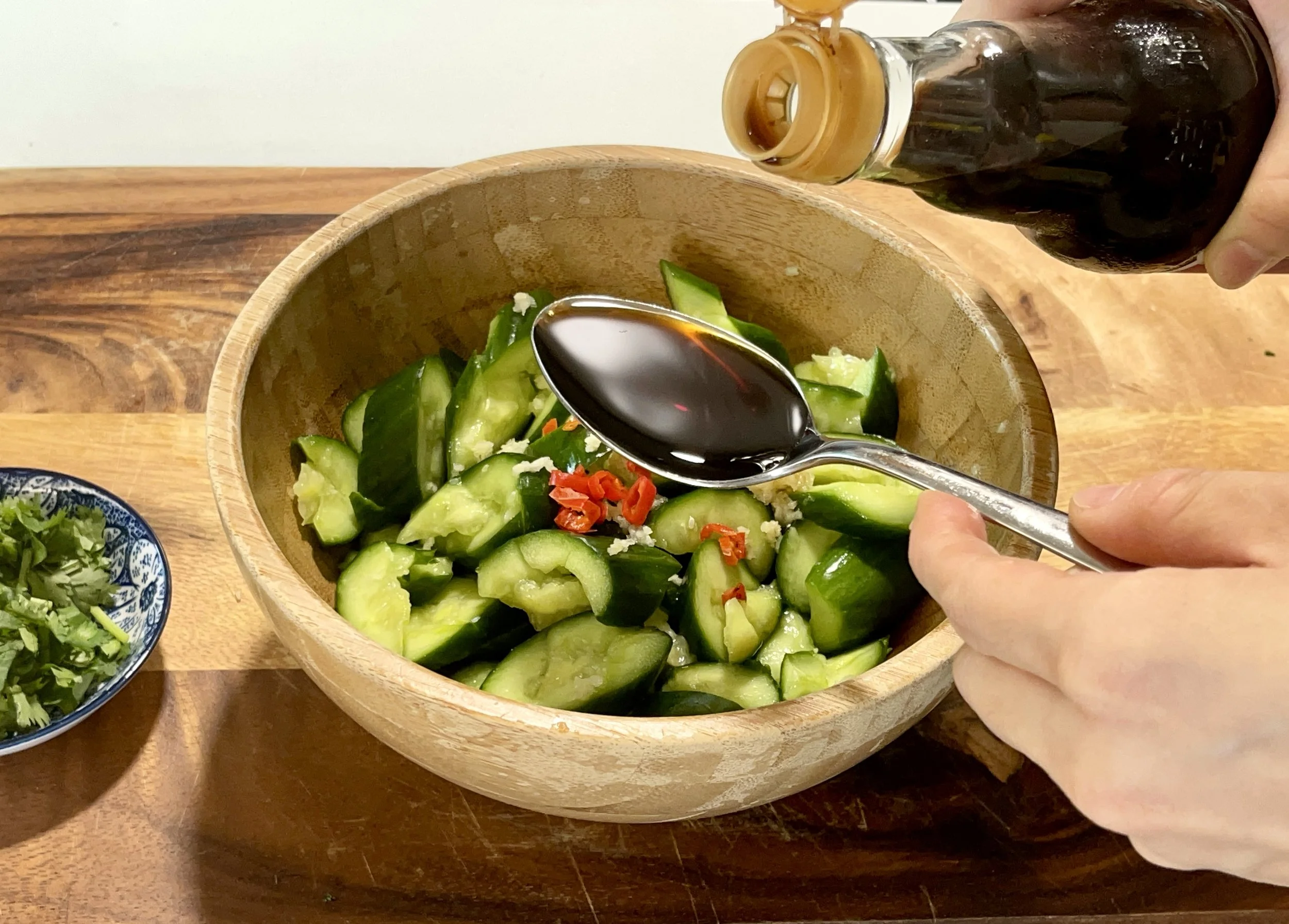 6. Pour away the released cucumber juice after resting.